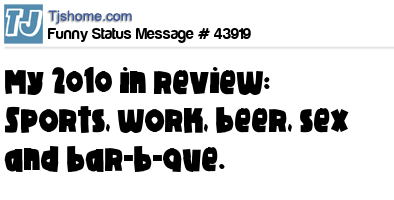 X says My 2010 in review: Sports, work, beer, sex and bar-b-que.