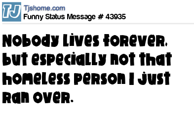 X Nobody lives forever, but especially not that homeless person I just ran over.