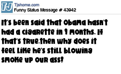 X It's been said that Obama hasn't had a cigarette in 9 months. If that's true,then why does it feel like he's still blowing smoke up our ass?