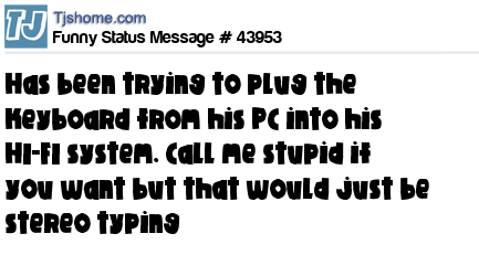 X has been trying to plug the keyboard from his PC into his HI-FI system. Call me stupid if you want but that would just be stereo typing