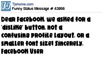 X is Dear Facebook, we asked for a 'dislike' button, not a confusing profile layout, or a smaller font size! Sincerely, Facebook User
