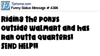 X is riding the ponys outside walmart and has ran outta quarters! SEND HELP!!