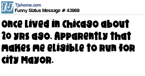 X once lived in Chicago about 20 yrs ago. Apparently that makes me eligible to run for city Mayor.