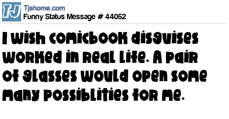 X I wish comicbook disguises worked in real life. A pair of glasses would open some many possiblities for me.