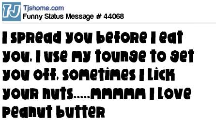 Get a life, Loser! This site is supposed to be for FUNNY statuses, not your lame ass nasty porn crap, filth, and sexual immorality. If you don't like to post good healthy family-friendly statuses, then go find a porn site and wack your pud over there. Get over your tiny penile fascination and grow up. Depart from here, ye workers of iniquity! In the name of Jesus, BE GONE!!! In other word, run along. Scooter has spoken!