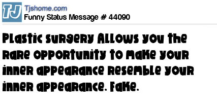 - # 43550 figured out that plastic surgery allows women to make their outer appearance resemble their inner appearance -- fake.