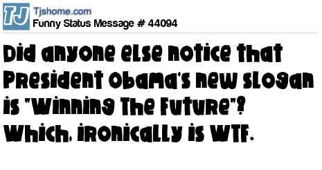 X Did anyone else notice that President Obama's new slogan is "Winning The Future"? Which, ironically is WTF.