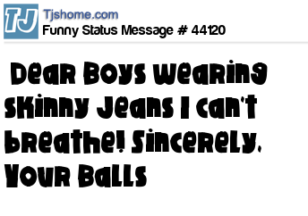 - # 102842 Dear guys wearing skinny jeans, I... Can't.... Breathe.... Sincerely, your damn balls.
