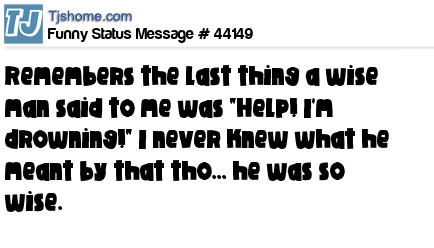 X remembers the last thing a wise man said to me was "Help! I'm drowning!" I never knew what he meant by that tho... he was so wise.
