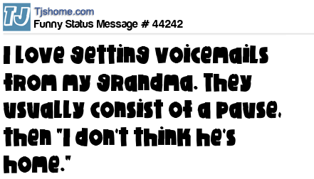 X I love getting voicemails from my grandma. They usually consist of a pause, then "I don't think he's home."