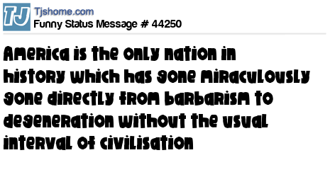 X America is the only nation in history which has gone miraculously gone directly from barbarism to degeneration without the usual interval of civilisation