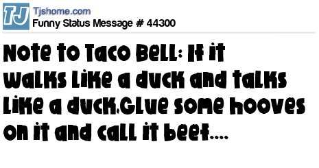 X Note to Taco Bell: If it walks like a duck and talks like a duck,Glue some hooves on it and call it beef....
