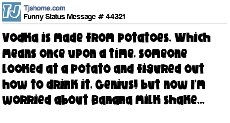 X says Vodka is made from potatoes. Which means once upon a time, someone looked at a potato and figured out how to drink it, Genius! but now I'm worried about Banana milk shake...