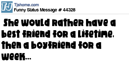 X is She would rather have a best friend for a lifetime, then a boyfriend for a week...