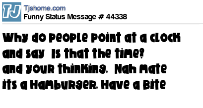 X says Why do people point at a clock and say “Is that the time?” and your thinking, “Nah mate its a Hamburger, Have a Bite