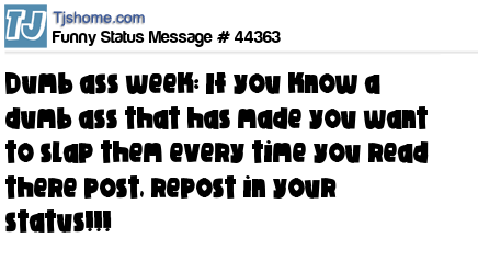 X Dumb ass week: If you know a dumb ass that has made you want to slap them every time you read there post, repost in your status!!!