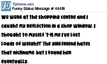 X We were at the shopping centre and I caught my reflection in a shop window, I thought to myself "F-k me I've lost loads of weight!" The girlfriend hates that nickname, but I found her eventually.