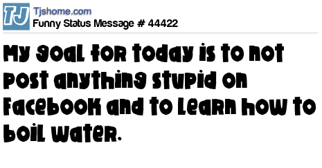 X My goal for today is to not post anything stupid on Facebook and to learn how to boil water.