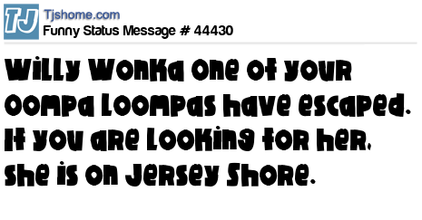 X says Willy Wonka One of your Oompa Loompas have escaped. If you are looking for her, she is on Jersey Shore.