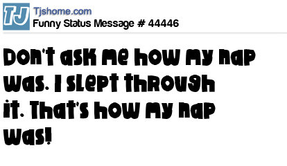 X don't ask me how my nap was. I slept through it. That's how my nap was!
