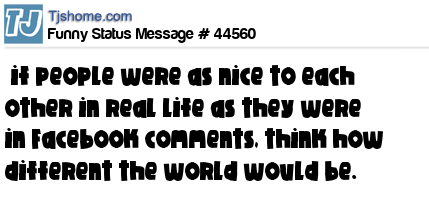 X if people were as nice to each other in real life as they were in Facebook comments, think how different the world would be.