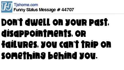 X Don't dwell on your past, disappointments, or failures, you can't trip on something behind you.