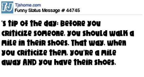 X 's tip of the day: Before you criticize someone, you should walk a mile in their shoes. That way, when you criticize them, you're a mile away AND you have their shoes.