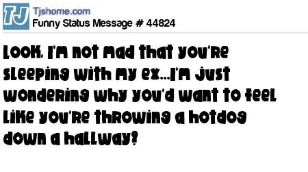 X look, I'm not mad that you're sleeping with my ex...I'm just wondering why you'd want to feel like you're throwing a hotdog down a hallway?