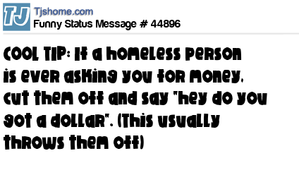 X COOL TIP: If a homeless person is ever asking you for money, cut them off and say "hey do you got a dollar". (This usually throws them off)