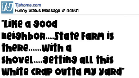 - # 54710 If State Farm were such a good neighbor they'd come over and pick up all the dog crap in my yard.