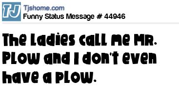 X The ladies call me Mr. Plow and I don't even have a plow.