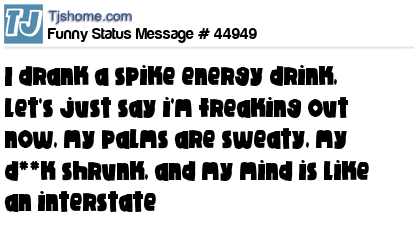 X is I drank a spike energy drink, let's just say i'm freaking out now, my palms are sweaty, my d**k shrunk, and my mind is like an interstate