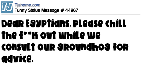 X Dear Egyptians, please chill the f**k out while we consult our groundhog for advice.