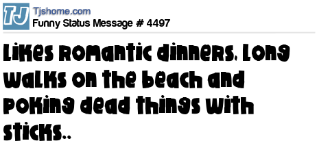 - # 80987 My dating profile is:- Likes poetry, long romantic walks in the woods and poking dead thing's with a stick.