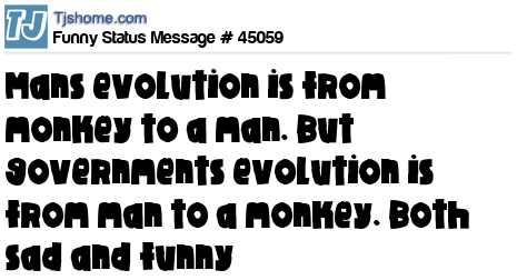 X mans evolution is from monkey to a man. But governments evolution is from man to a monkey. Both sad and funny