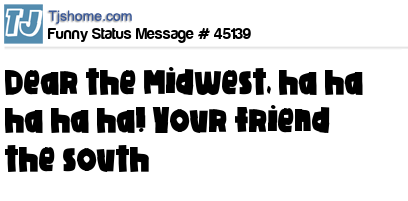 X is Dear the Midwest, ha ha ha ha ha! Your friend the south