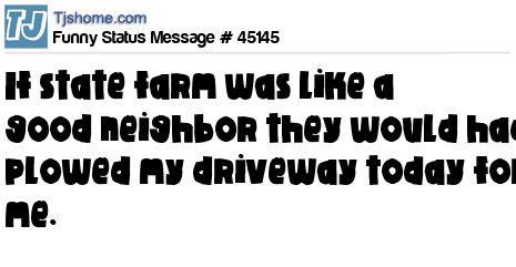 X If state farm was like a good neighbor they would had plowed my driveway today for me.