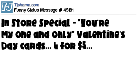 - # 14718 Valentines Day...The perfect day to buy your "someone special" a card with someone else's words and overpriced flowers. Ahhh, who said romance is gone?