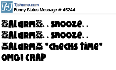 X ~Alarm~. . snooze. . ~Alarm~. . snooze. . ~Alarm~ *checks time* OMG! CRAP
