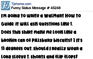 - # 128213 Dear girl in Walmart, Yes it is summer but your shirt and shorts are way too small and you look like a half opened can of biscuits. Sincerely, The guy in line behind you clawing out his eyeballs..