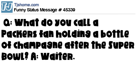 X Q: What do you call a Packers fan holding a bottle of champagne after the Super Bowl? A: Waiter.