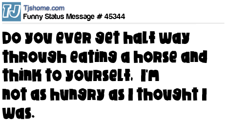 - # 204810 Have you ever gotten half way through eating a horse and thought .. Hmm maybe I wasn't as hungry as I thought I was ?