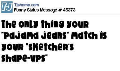 X the only thing your "pajama jeans" match is your "sketcher's shape-ups"