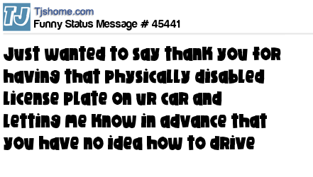 X is just wanted to say thank you for having that physically disabled license plate on ur car and letting me know in advance that you have no idea how to drive