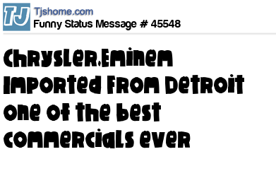 X is Chrysler,Eminem Imported From Detroit one of the best commercials ever