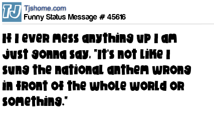 X If I ever mess anything up I am just gonna say, "It's not like I sung the national anthem wrong in front of the whole world or something."