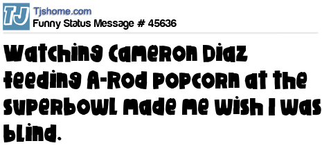 X Watching Cameron Diaz feeding A-Rod popcorn at the superbowl made me wish I was blind.