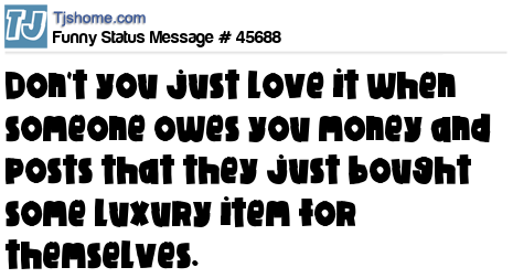 X Don't you just love it when someone owes you money and posts that they just bought some luxury item for themselves.