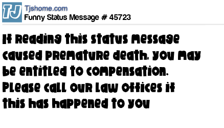X If reading this status message caused premature death, you may be entitled to compensation. Please call our law offices if this has happened to you