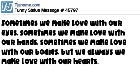 X says Sometimes we make love with our eyes, sometimes we make love with our hands, sometimes we make love with our bodies, but we always we make love with our hearts.